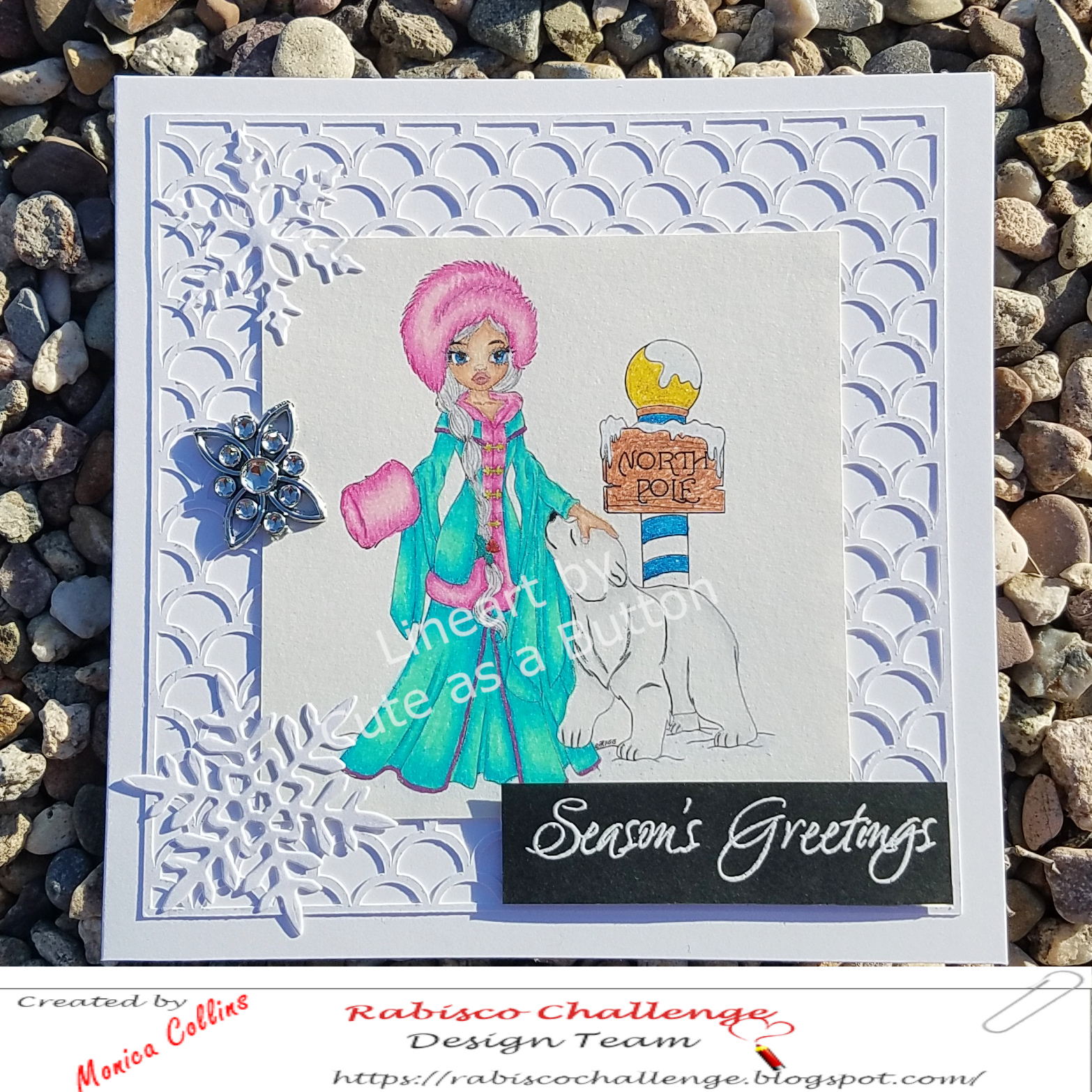 Today I have a card to share with you for the mid-time sponsor at Rabisco Challenge blog. Our sponsor is Cute As A Button Digistamps and I got to work with North Pole.